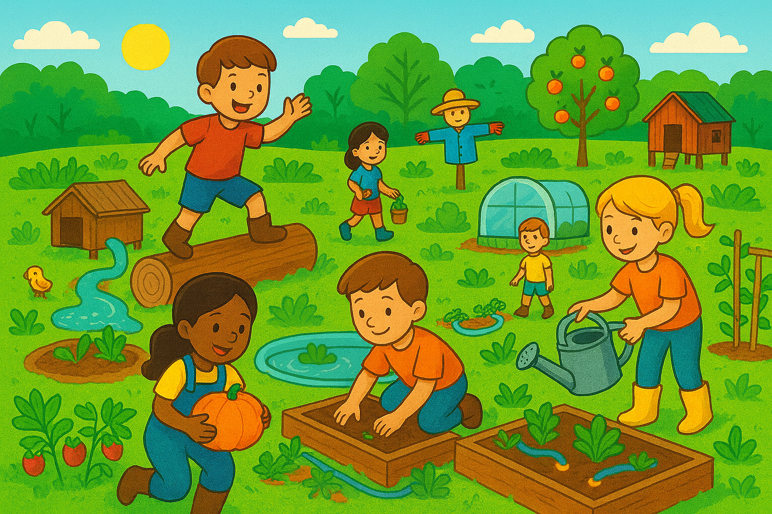 The vision includes sensory gardens, zen reflection areas, music spaces, nature playgrounds, treehouses, butterfly gardens, and peaceful places for rest and restoration.