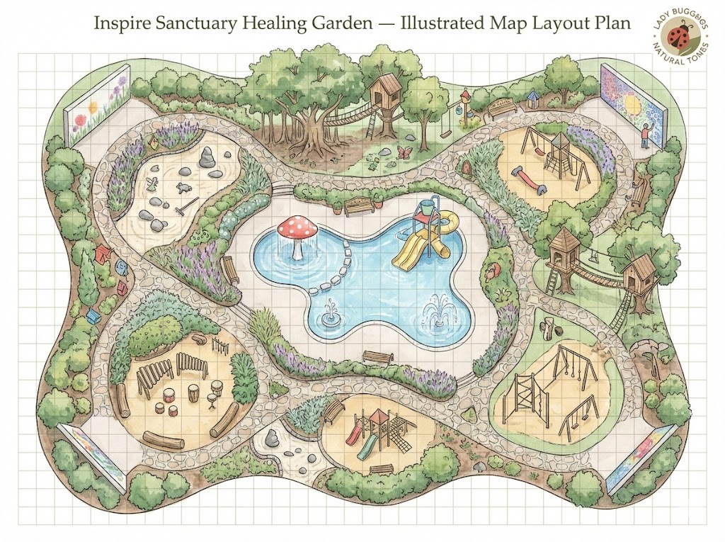 Garden Filled with Wood and Metal Instruments that are Safe for Toddlers and Sharing